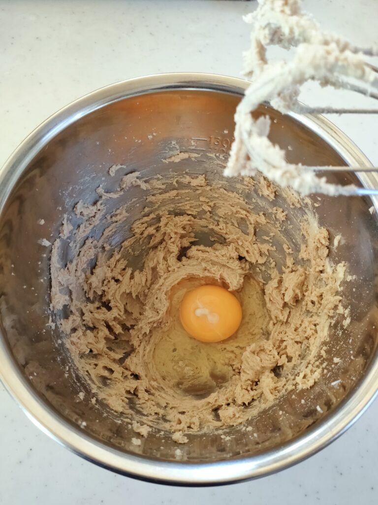 きび砂糖を2回に分けて加え、よくすり混ぜる。