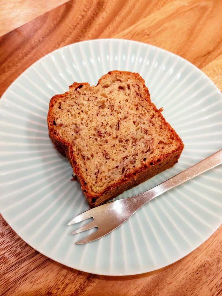 当時は油脂に安価なショートニング使用していたようですが、時代と共に健康への意識も高まり現在のバナナブレッドが誕生しました。